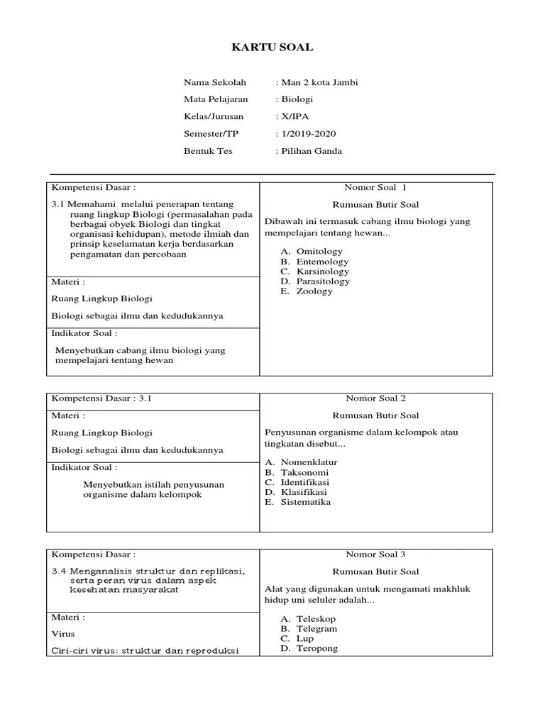 Yayuk farida kusumadewi sman 1 trenggalek kartu soal pilihan ganda mata pelajaran : Kumpulan soal ini terdiri dari 40 soal tentang . Seiring dengan berkembangnya zaman, manusia mulai . Postingan kali ini menampilkan soal dan pembahasan ruang lingkup biologi bentuk pilihan ganda semoga bermanfaat. Kumpulan soal pilihan berganda bidang studi biologi tentang ruang lingkup biologi.